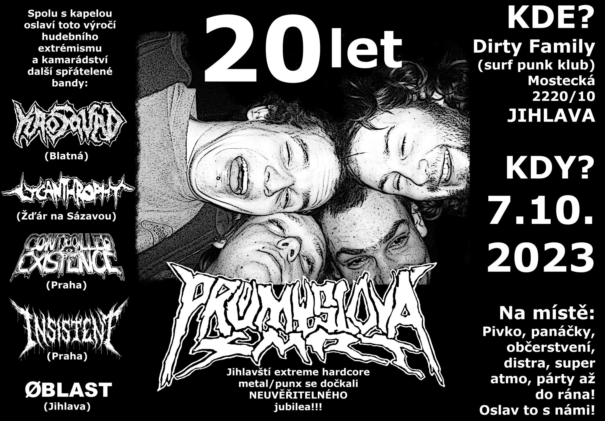 Adresa: Mostecká 2220/10, Jihlava - klub DIRTY FAMILY (vedle bývalýho klubu Ponorka,Ježek)