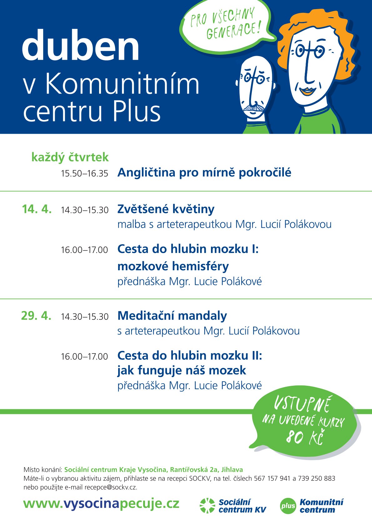 Rezervujte si své místo na recepci Sociálního centra Kraje Vysočina, na tel. čísle 739 250 883 nebo na tel. 567 157 923.