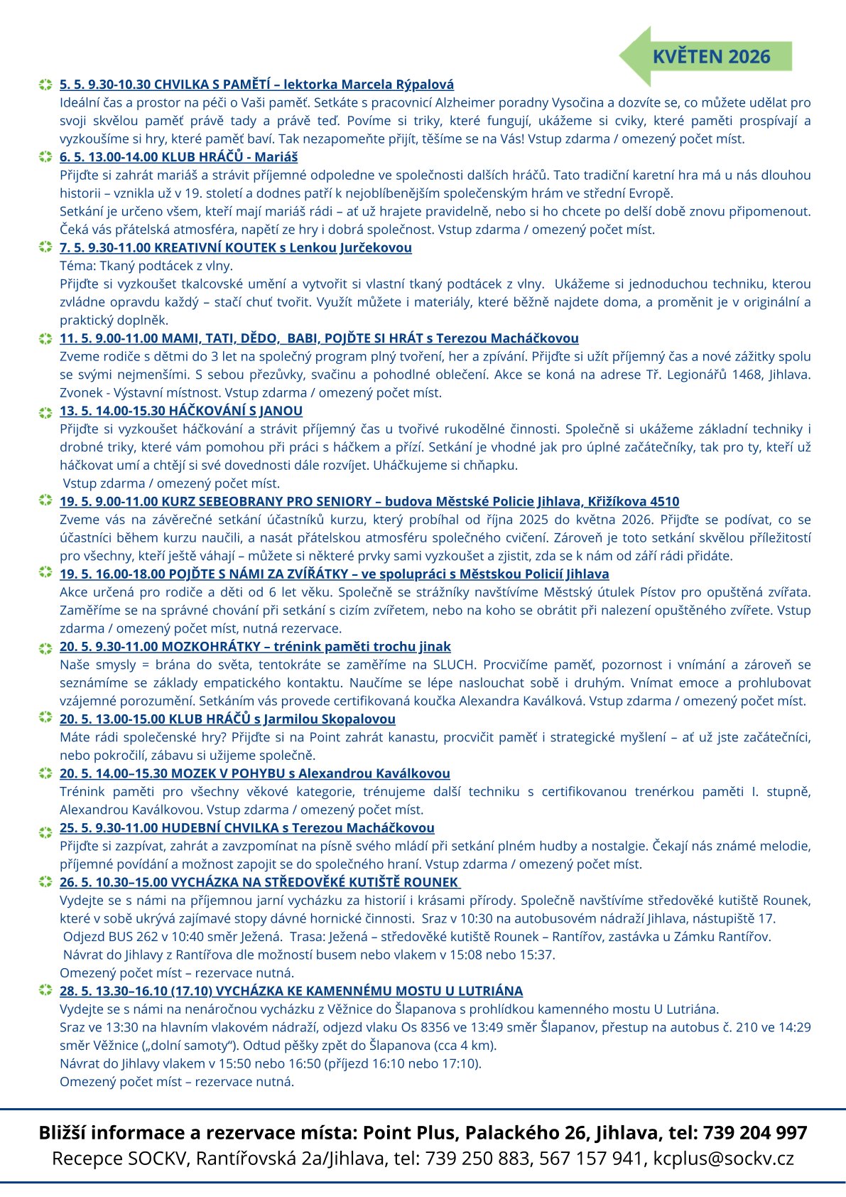 Bližší informace a rezervace místa: Point Plus, Palackého 26, Jihlava, tel: 739 204 997.