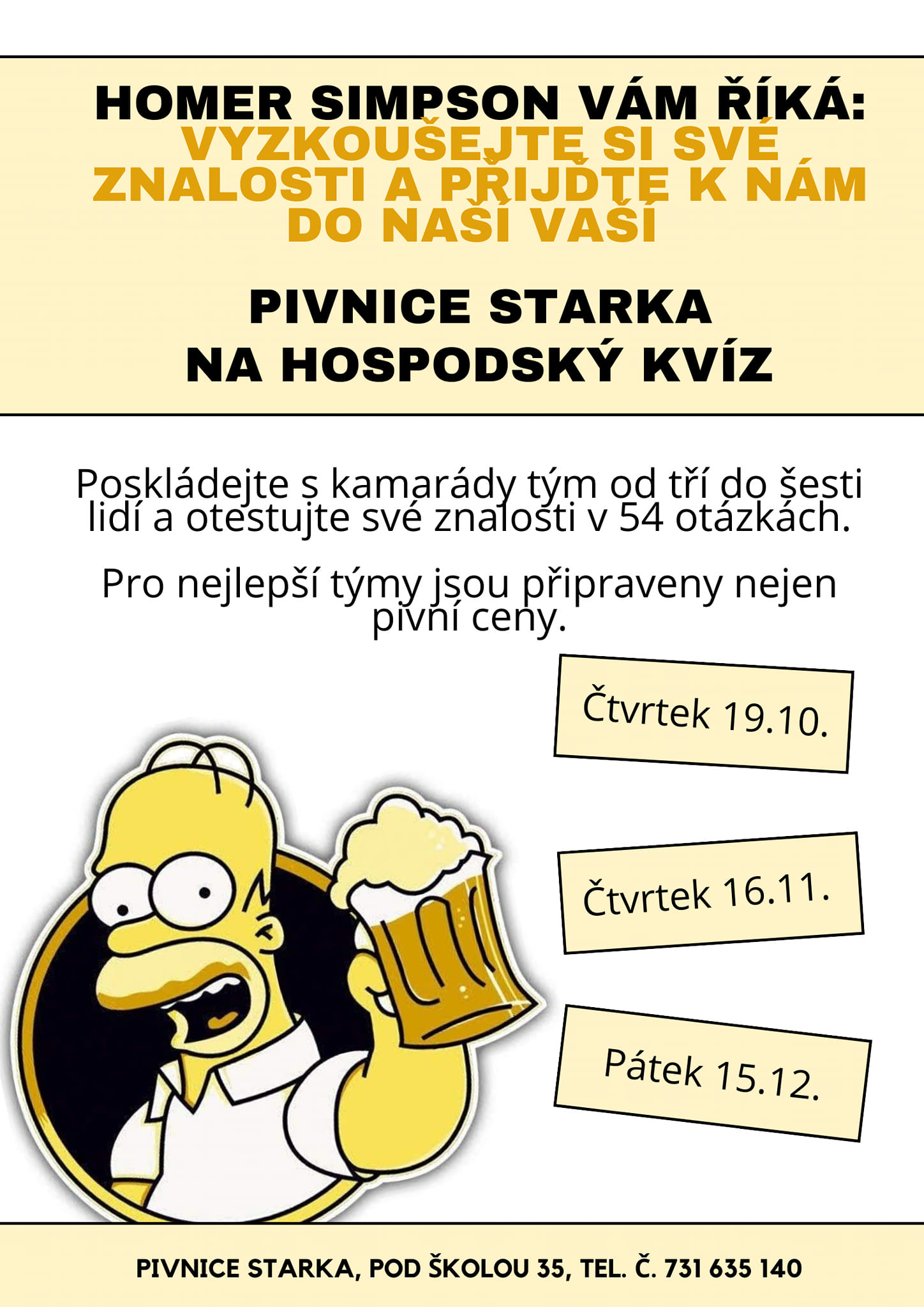 Poskládejte s kamarády tým 3 - 6 lidí a otestujte své znalosti v 54 otázkách. Pro nejlepší týmy jsou připraveny nejen pivní ceny.