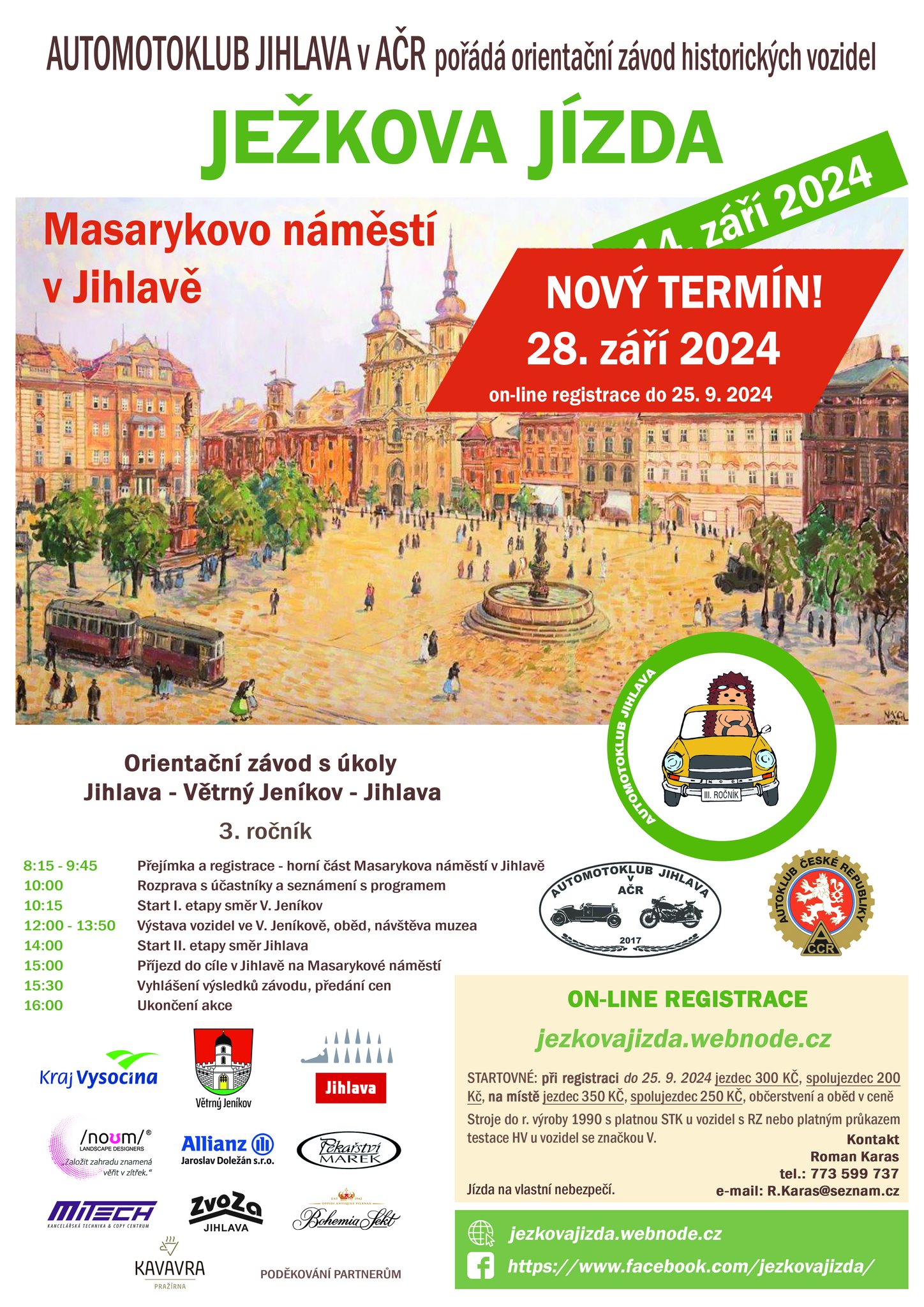28. září budou v horní části Masarykova náměstí vystaveny historické automobily i motocykly, od předválečných veteránů po stroje z 80. let min. století. Bude možné si je prohlédnout, pohovořit s jejich majiteli, bude uveden jejich popis a zajímavosti. Během registrace posádek do následné vyjížďky proběhne doprovodný program, součástí budou soutěže pro děti. Část úkolů budou soutěžící posádky historických vozidel plnit na náměstí, následný start strojů do vyjížďky bude komentovaný. Závěrečná část s vyhlášením výsledků proběhne opět na Masarykově náměstí po 15 hodině.