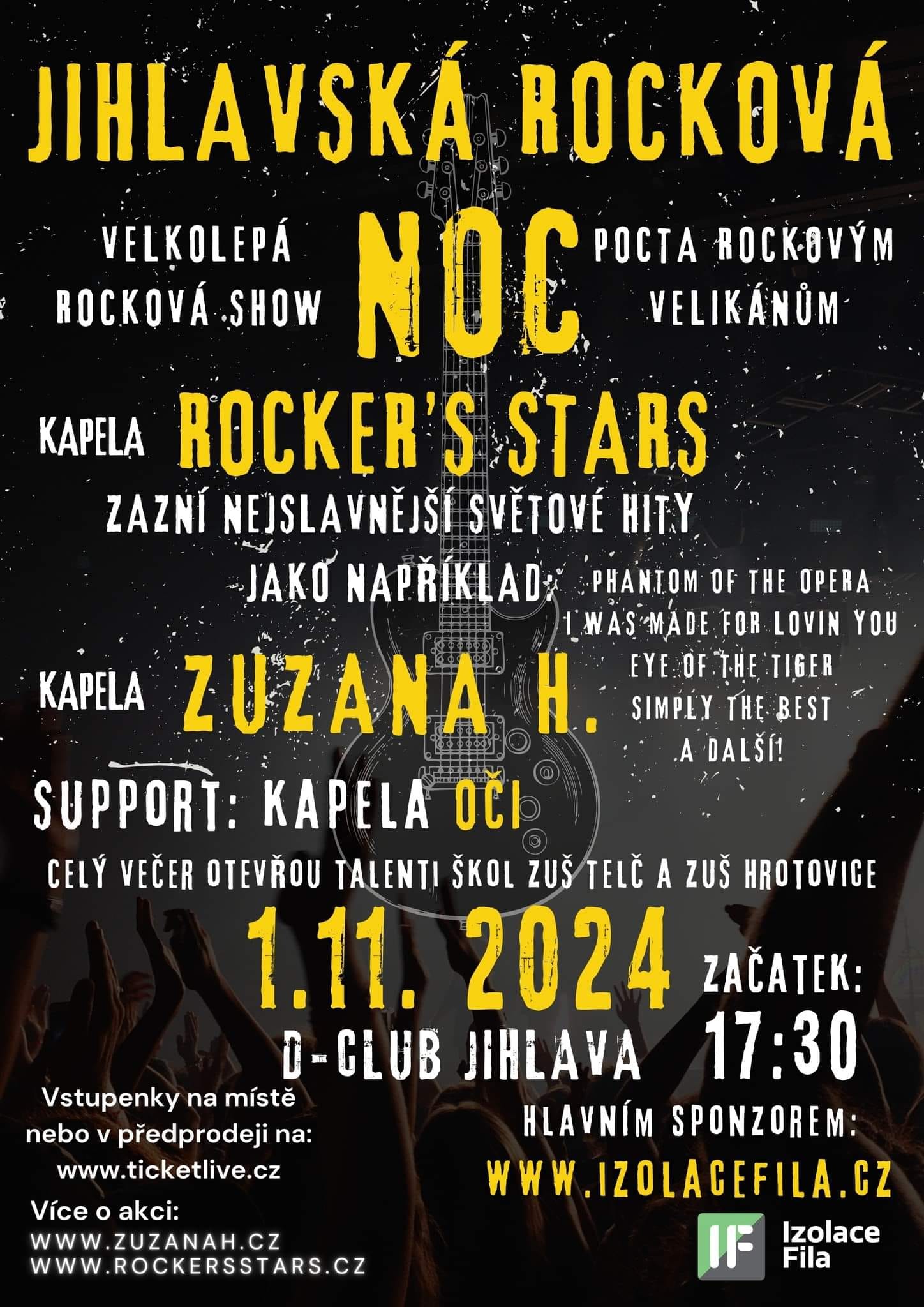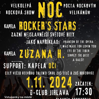 Bohatý program vás čeká již od 17:30, celý večer protnou ty NEJSLAVNĚJŠÍ SVĚTOVÉ HITY, můžete se těšit například na PHANTOMA OPERY v podání zpěváka Lukáše Písaříka a Zuzany H, dále se můžete těšit na písně od známých kapel jako například Kiss, Tiny Turner, Bryana Adamse, Pink, Twisted Sister, Guns 'n' Roses, AC/DC a mnoho dalších! Tyto megahity vám zahraje skupina Rocker's stars a jejich vystoupení je vážně nezapomenutelné.