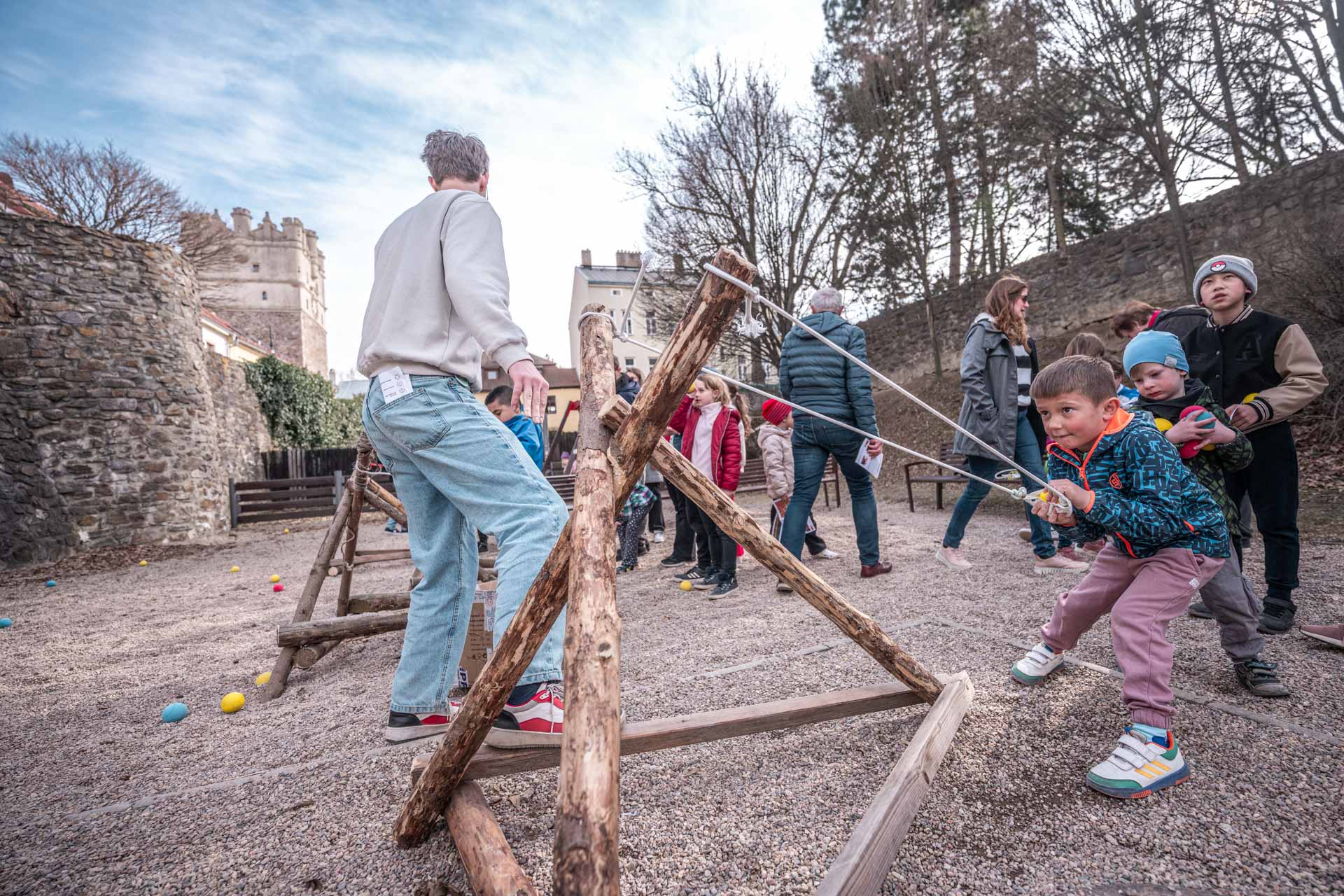 Děti se promění v opravdové hrdiny a společně vybudují obranu města proti loupeživým rytířům. Prožijí napínavou bitvu a za svou statečnost budou odměněny! Každý, kdo se zapojí do obrany města, malý i velký, dostane zdarma pravou středověkou kapří polévku pro posilnění!