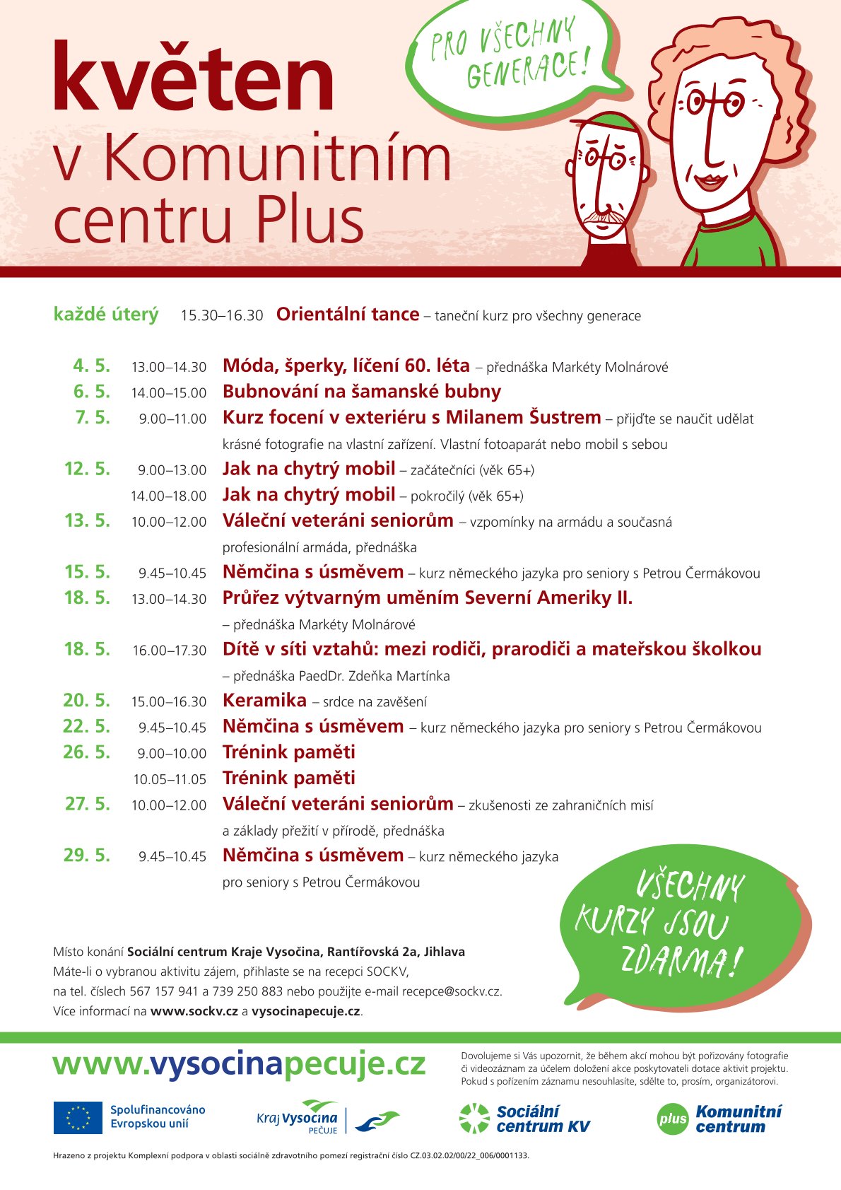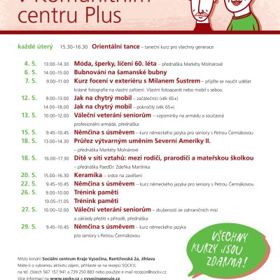 Rezervujte si své místo na recepci Sociálního centra Kraje Vysočina, na tel. čísle 739 250 883 nebo na tel. 567 157 923.