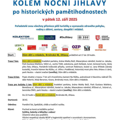 Cíl: Do 22 hodin v Domě dětí a mládeže, Brněnská 46, Jihlava.