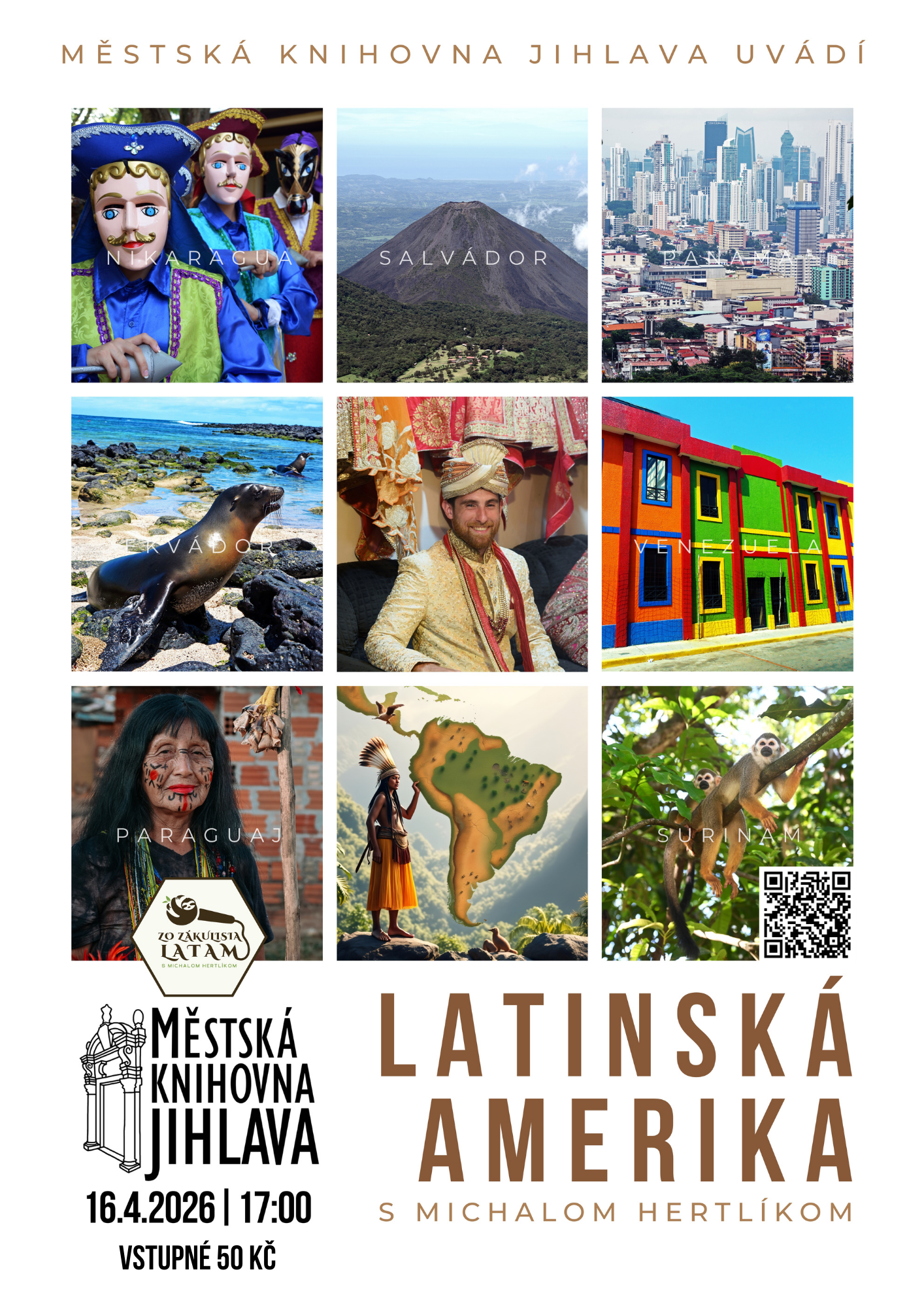 Přednáškou vás provede Michal Hertlík, slovenský cestovatel, fotograf, dokumentarista, dobrodruh, sběratel a lektor španělštiny. Latinská Amerika je jeho srdeční záležitostí – a právě nadšení, osobní zkušenost i chuť sdílet autentické příběhy dávají celé přednášce její přirozenou atmosféru.