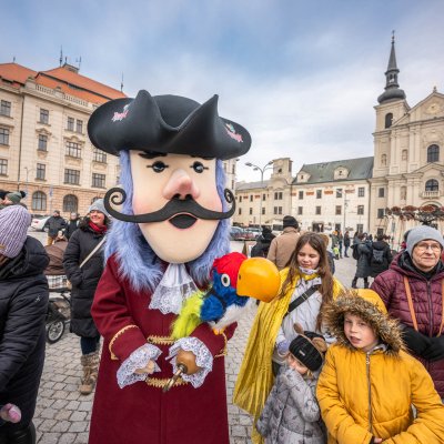 Taškařice budou tropit masky a nadživotní loutky divadla T.E.J.P. a mnoho dalších. Přijď s maskou nebo bez ní mezi nás a užít si další ročník této akce. Akce začíná na Masarykově náměstí za doprovodu živé muziky. Později přijdou nadživotní loutky a masky Půsta a Masopusta, které budou bojovat o vládu nad městem.