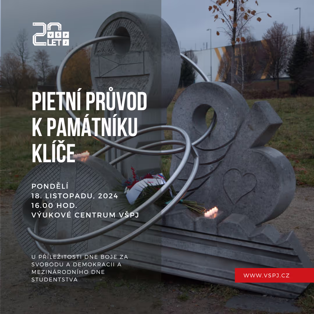 🤍Připomeňme si společně události 17. listopadu 1939 a 1989. Jménem Studentské komory Akademického senátu VŠPJ Vás zveme k účasti na pietním průvodu k památníku Klíče, který se uskuteční v pondělí 18. listopadu 2024.