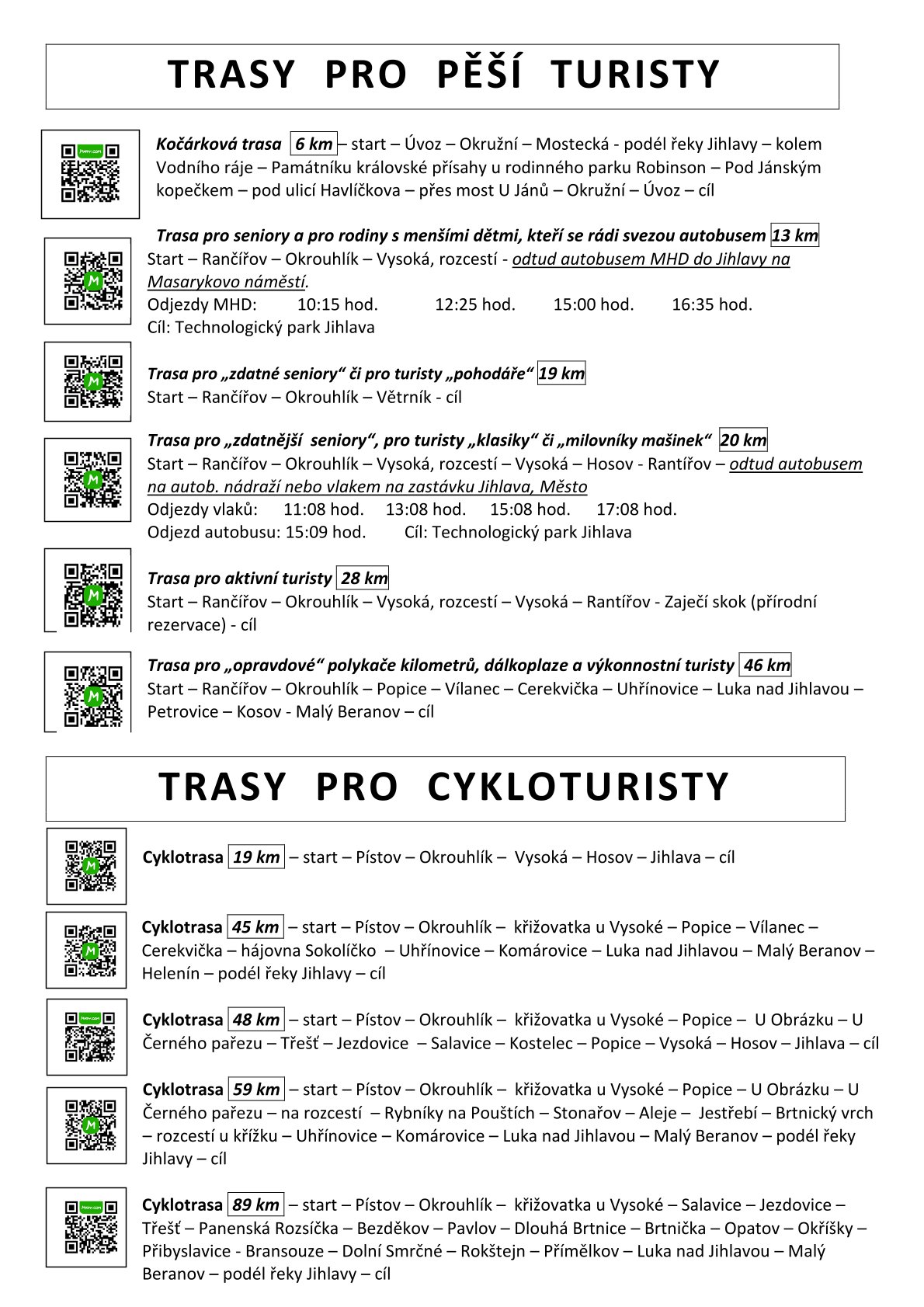 TRASY PRO PĚŠÍ TURISTY: 6, 13, 19, 20, 28 a 46 km.