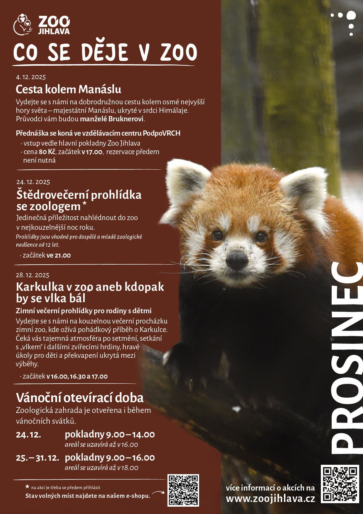 Prohlídky jsou vhodné pro dospělé a mladé zoologické nadšence od 12 let.V průběhu prohlídky je možné odejít dříve dle potřeby.