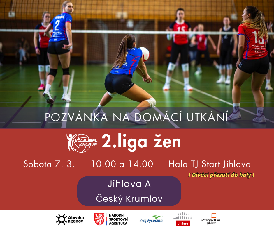 Lídr druholigové tabulky skupiny B volejbalistky z Jihlavy přivítají ve své domácí volejbalové tvrzi - v hale TJ Start v sobotu 7. 3. čtvrtý tým tabulky Český Krumlov.
