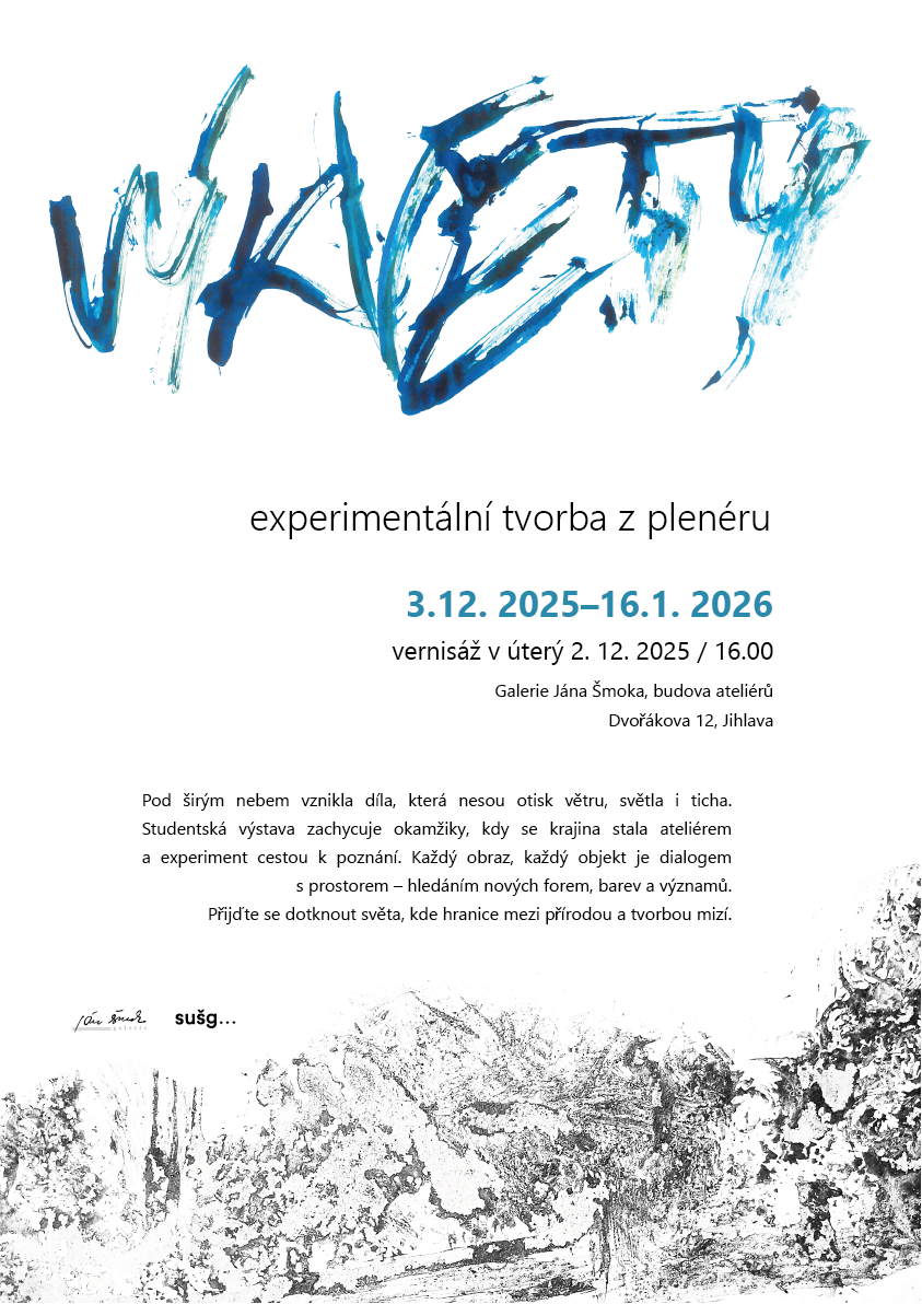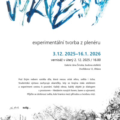 Výstava představuje výsledky z plenérové tvorby studentů oboru Grafický design, jehož cílem bylo zkoumání možností experimentální tvorby mimo tradiční prostředí ateliéru. Cílem bylo ověřit možnosti rozšíření tradičních grafických postupů prostřednictvím práce s netypickými materiály, strukturami a vizuálními koncepty. Studenti se soustředili na procesualitu tvorby, interakci s prostředím a hledání nových vizuálních strategií, které překračují rámec standardní ateliérové praxe.