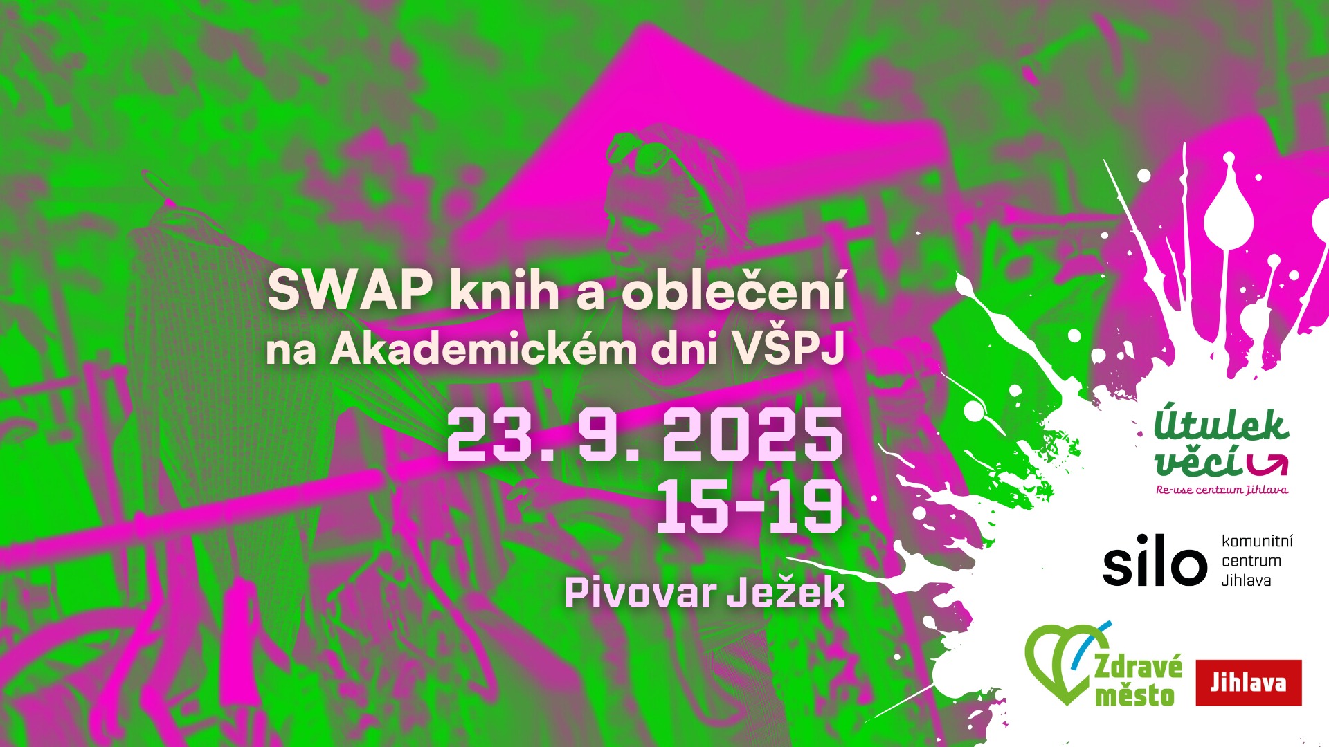 Na Akademickém dni VŠPJ se opět potkáme a něco vyswapujeme! Vyměňte u nás své nepoužívané oblečení a knihy a odneste si, co potřebujete.