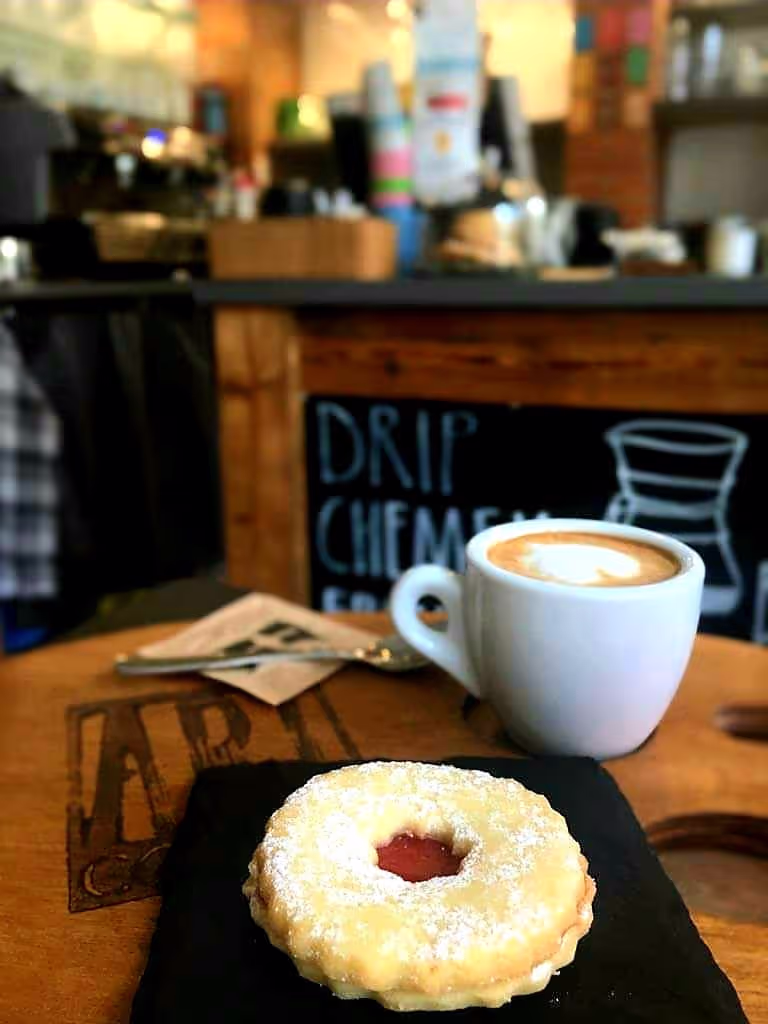 Klidná kavárna s výbornou kávou a oblíbenou zahrádkou u parku Gustava Mahlera.