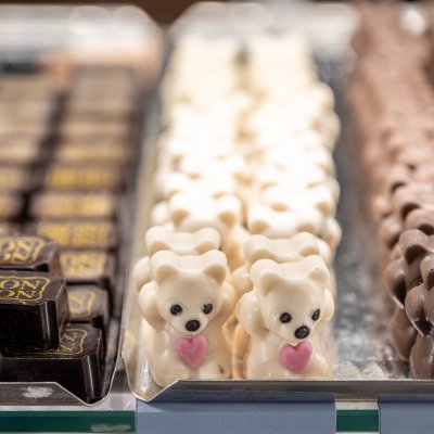 Kavárna je vyhlášená svými čokoládovými bonbóny a pralinkami vlastní výroby.