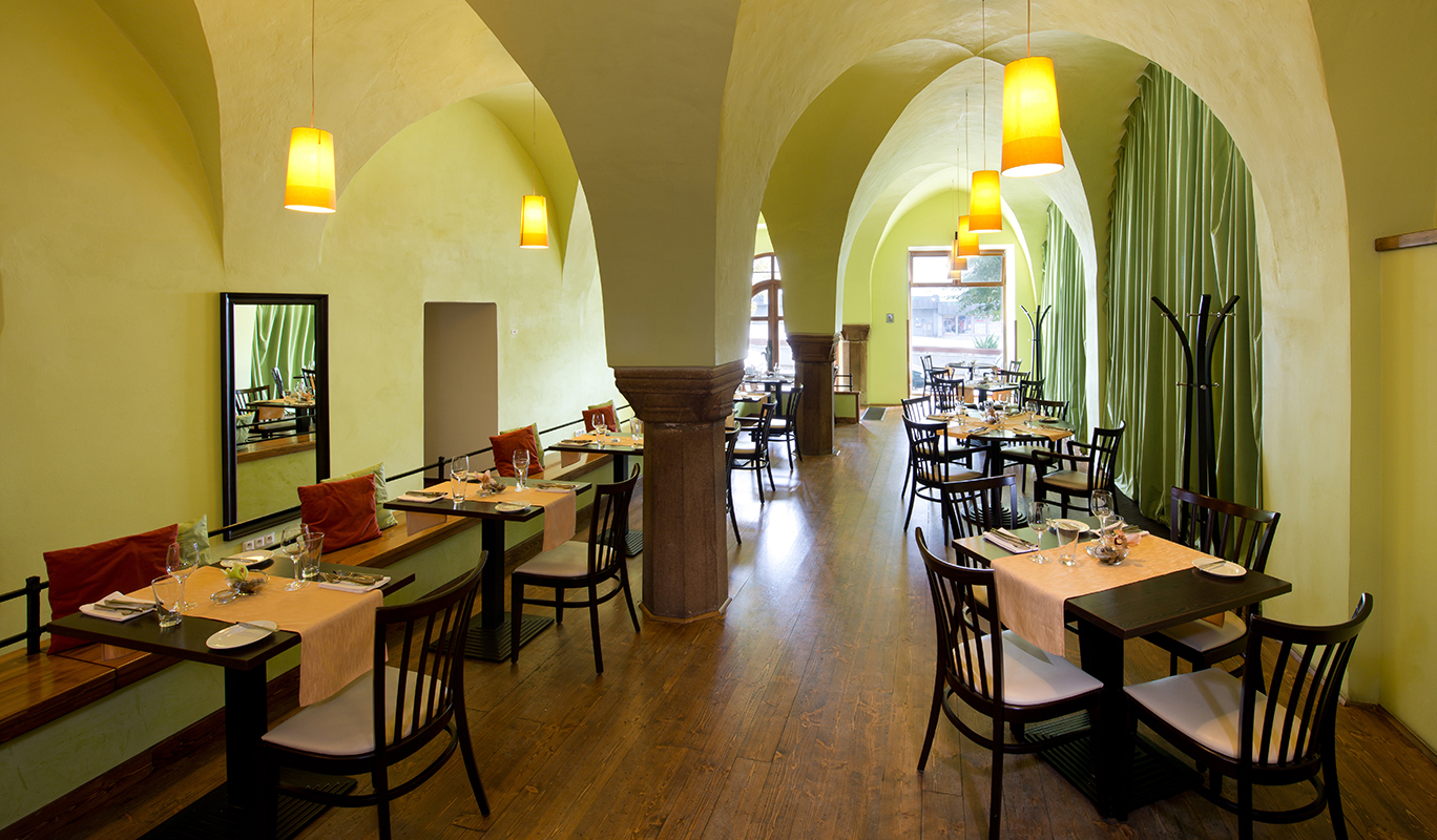 Restaurace v centru města vám nabízí moderní pojetí interiéru i gastronomie s kapacitou 45 míst. Při posezení v restauraci můžete díky otevřené kuchyni sledovat práci kuchařského týmu vedeného majitelem a zároveň šéfkuchařem Pavlem Marešem, který je dlouholetým členem Národního týmu kuchařů a cukrářů AKC ČR.