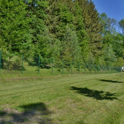 U louky je rozlehlá travnatá plocha vhodná pro piknik, relaxování či sportovní aktivity.