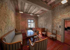 Interiéry vysokých síní renesančních patricijských paláců.
